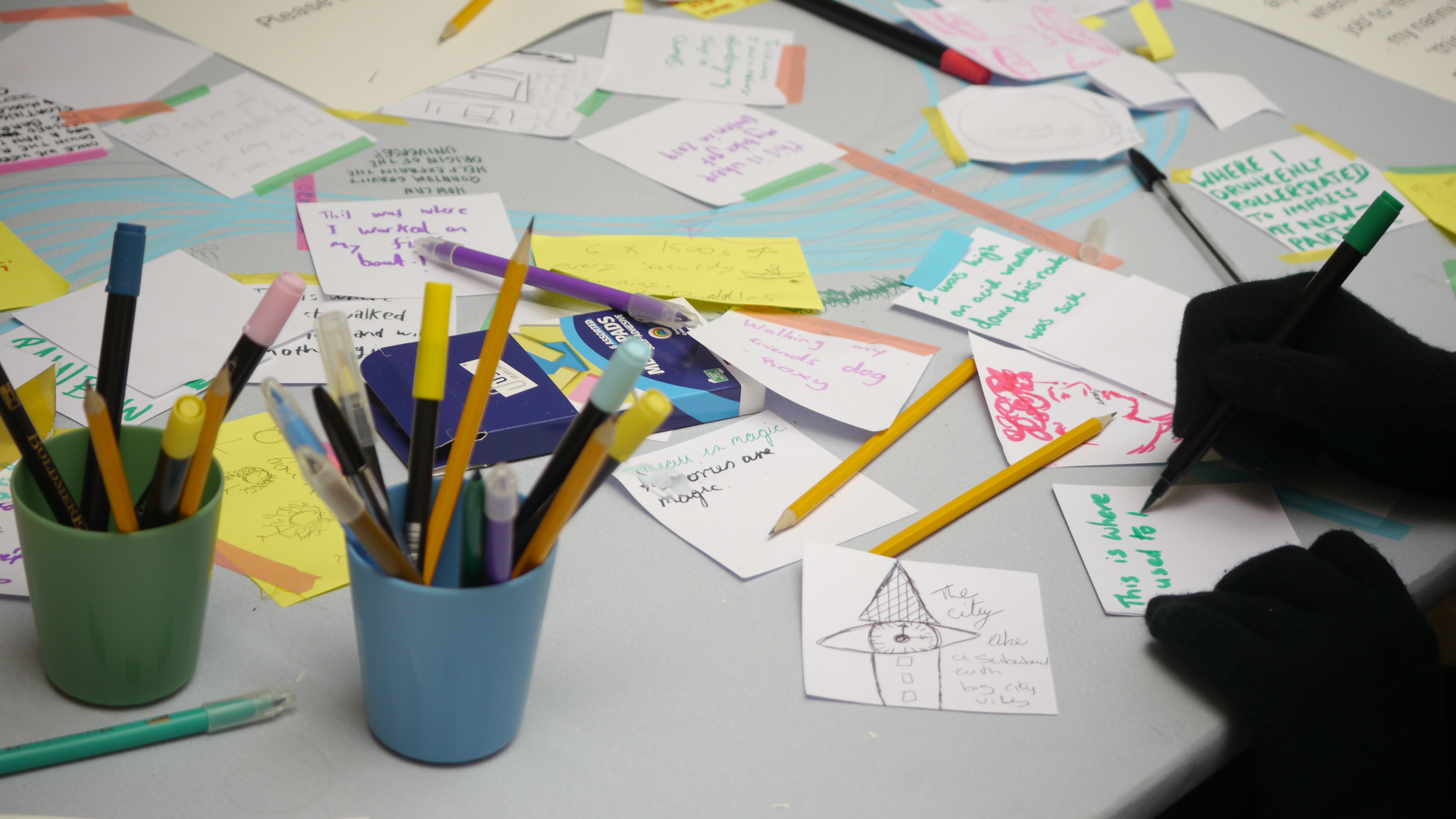 My piece within the exhibition invited the audience to add their own personal stories of place to a table or very vague map of Belfast. I was interested in their version of Belfast and what memories or stories constructed it. My take on ‘Ideal Development Opportunity’ is that developers coming into a city have no idea of the lived place. A place cannot be sensitively developed without first understanding the people, memories and histories forming that place.